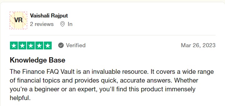 And that’s exactly what ‘1400 Finance FAQ Vault’ does for you!