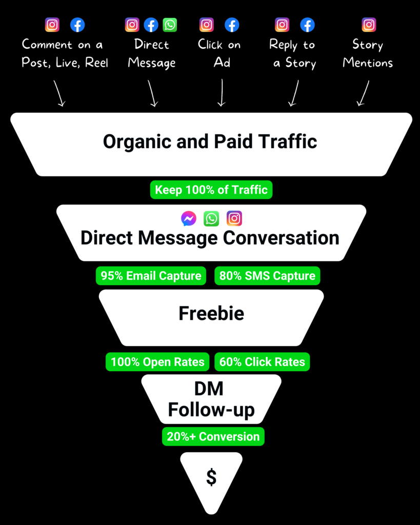 We exist to help online businesses scale to their full potential using Chat Funnels on Instagram DM and Facebook Messenger.
