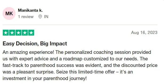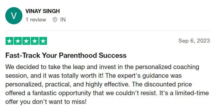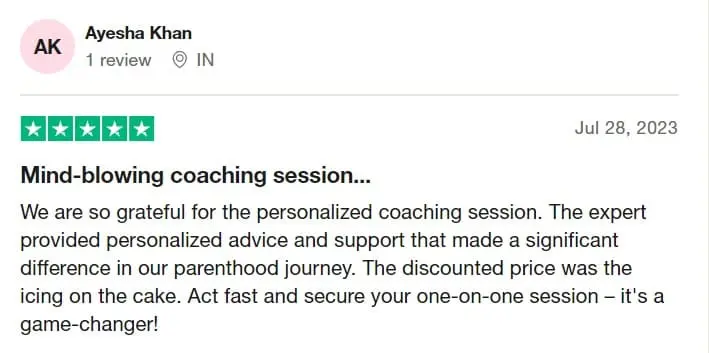 “LUCKILY YOU’VE UNLOCKED THE ONE & ONLY CHANCE TO ACCELERATE PARENTHOOD JOURNEY WITH A PERSONALIZED 1:1 COACHING SESSION BY AN EXPERT!